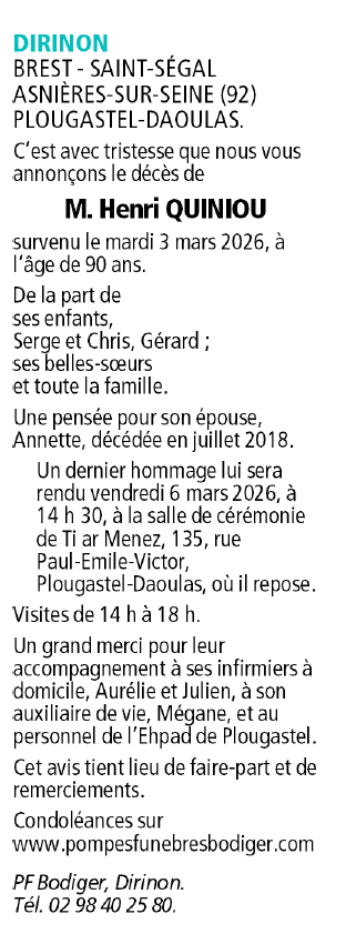 Décédé à Landerneau (29800) le mardi 3 mars 2026 à l'âge de 90 ans