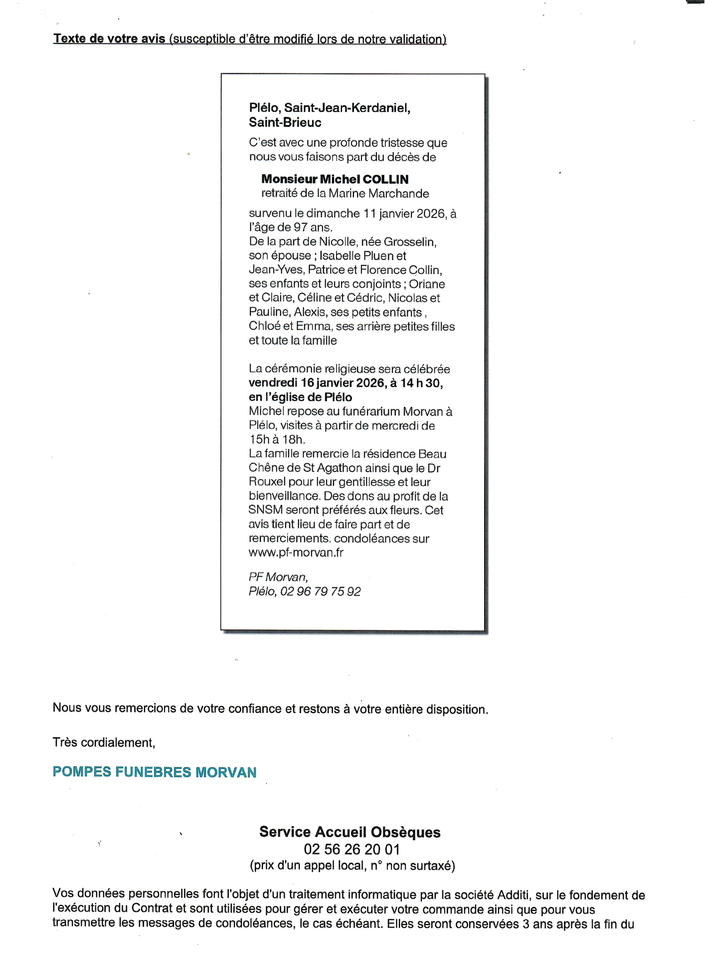 Annonce nécrologique