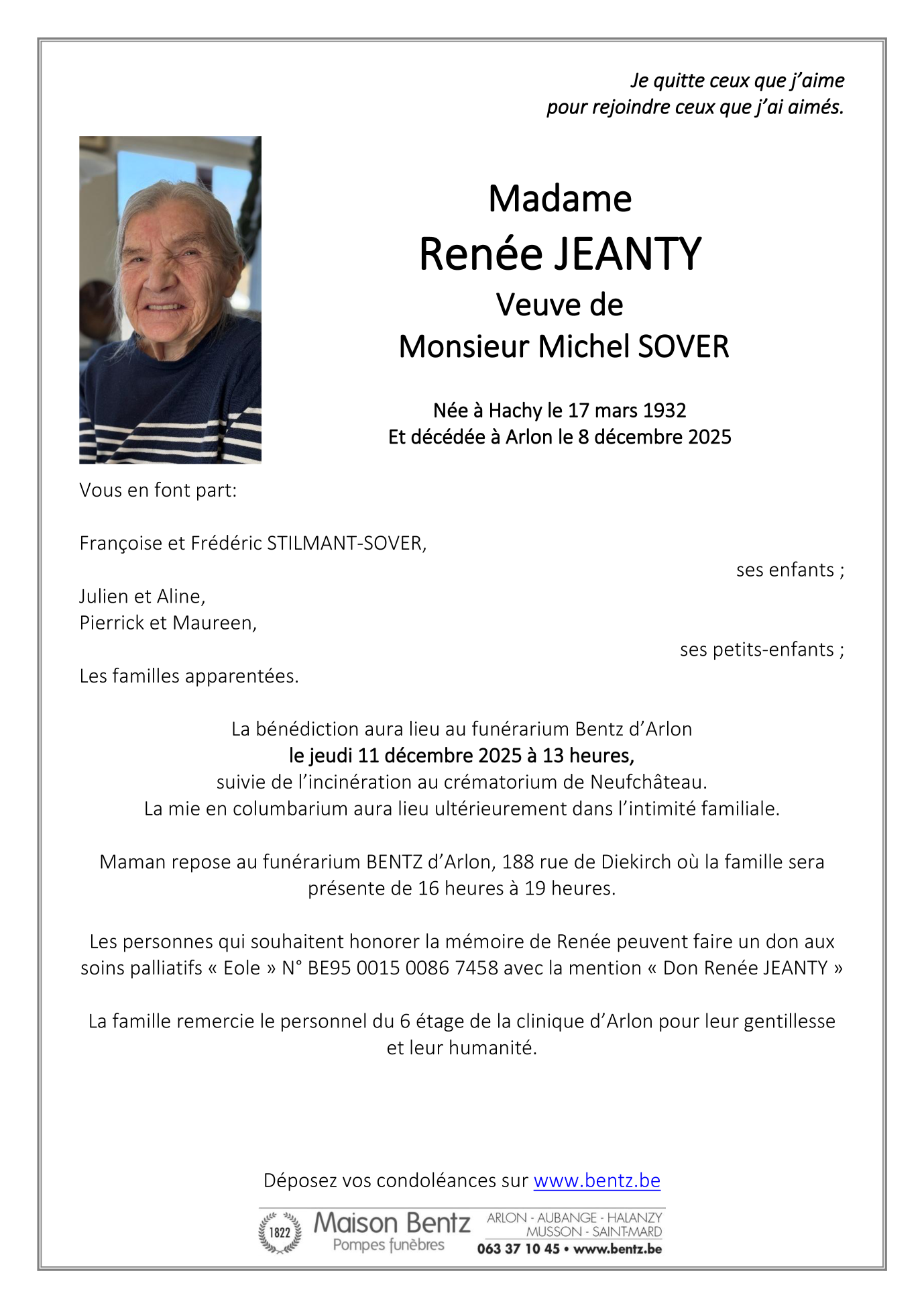 Overleden te Arlon (6700, België) op maandag 8 december 2025 op 93-jarige leeftijd
