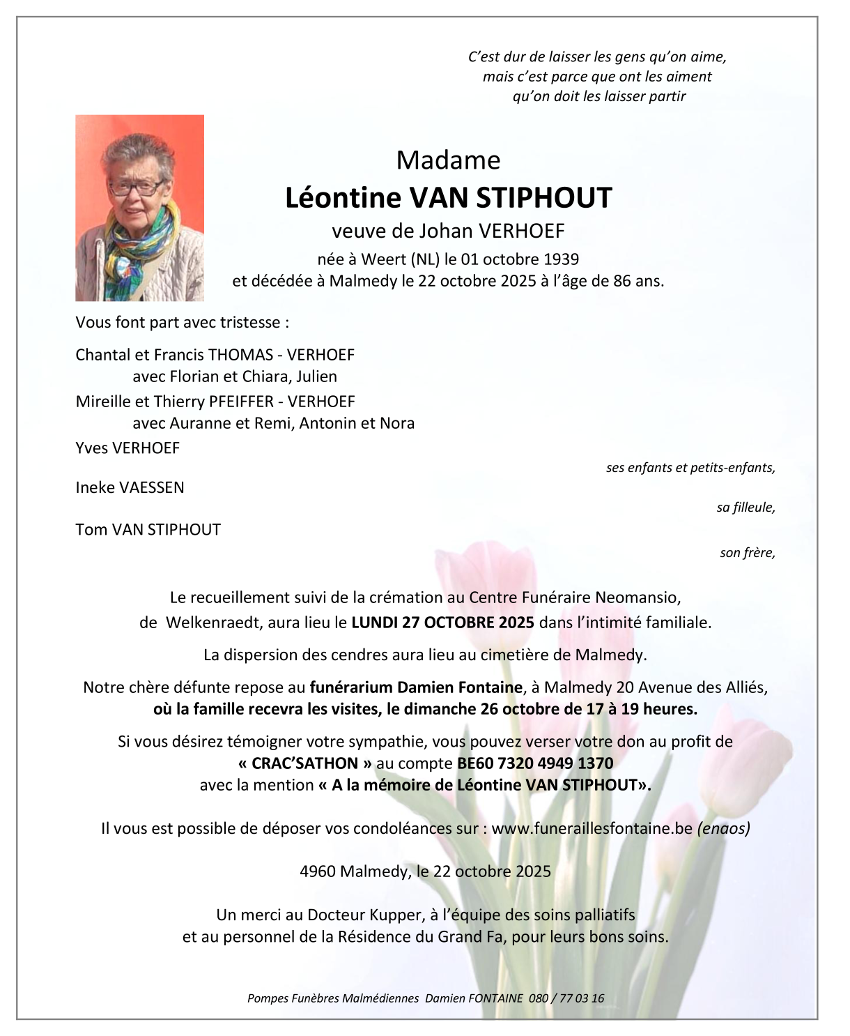 Overleden te Malmedy (4960, België) op woensdag 22 oktober 2025 op 86-jarige leeftijd