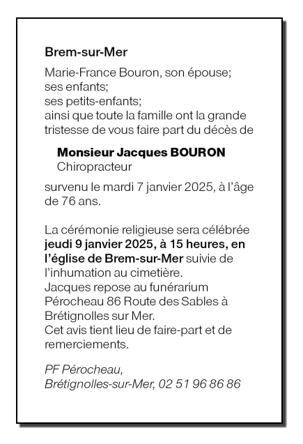 Fallecido en Nantes (44000) el martes, 7 de enero de 2025 a la edad de 76 años