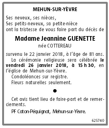 Madame Jeannine GUENETTE née COTTEREAU