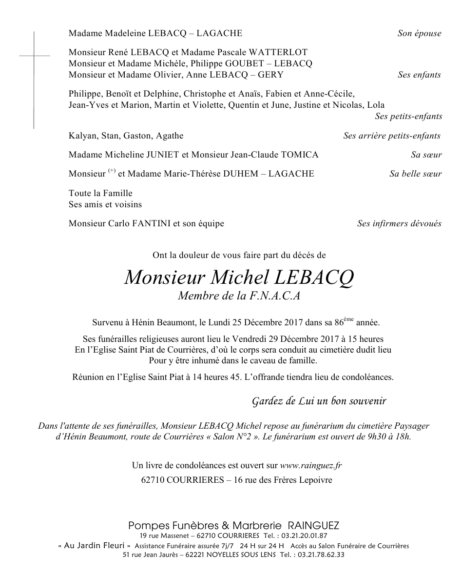Overleden te Hénin-Beaumont (62110) op maandag 25 december 2017 op 85-jarige leeftijd