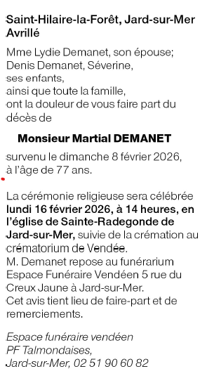 Domicilié à Saint-Hilaire-la-Forêt (85440)