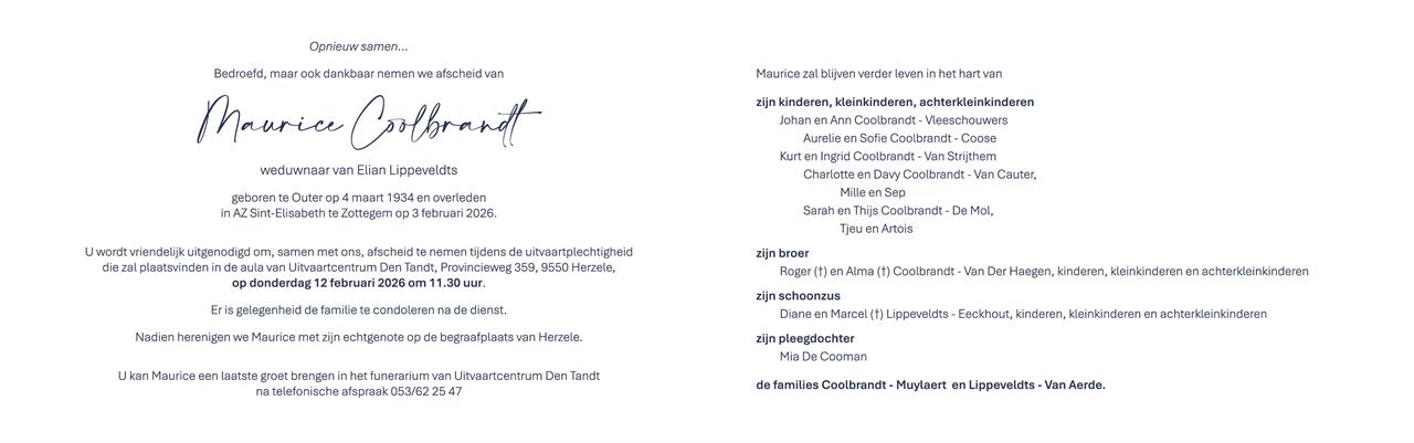 Overleden te Zottegem (9620, België) op dinsdag 3 februari 2026 op 91-jarige leeftijd