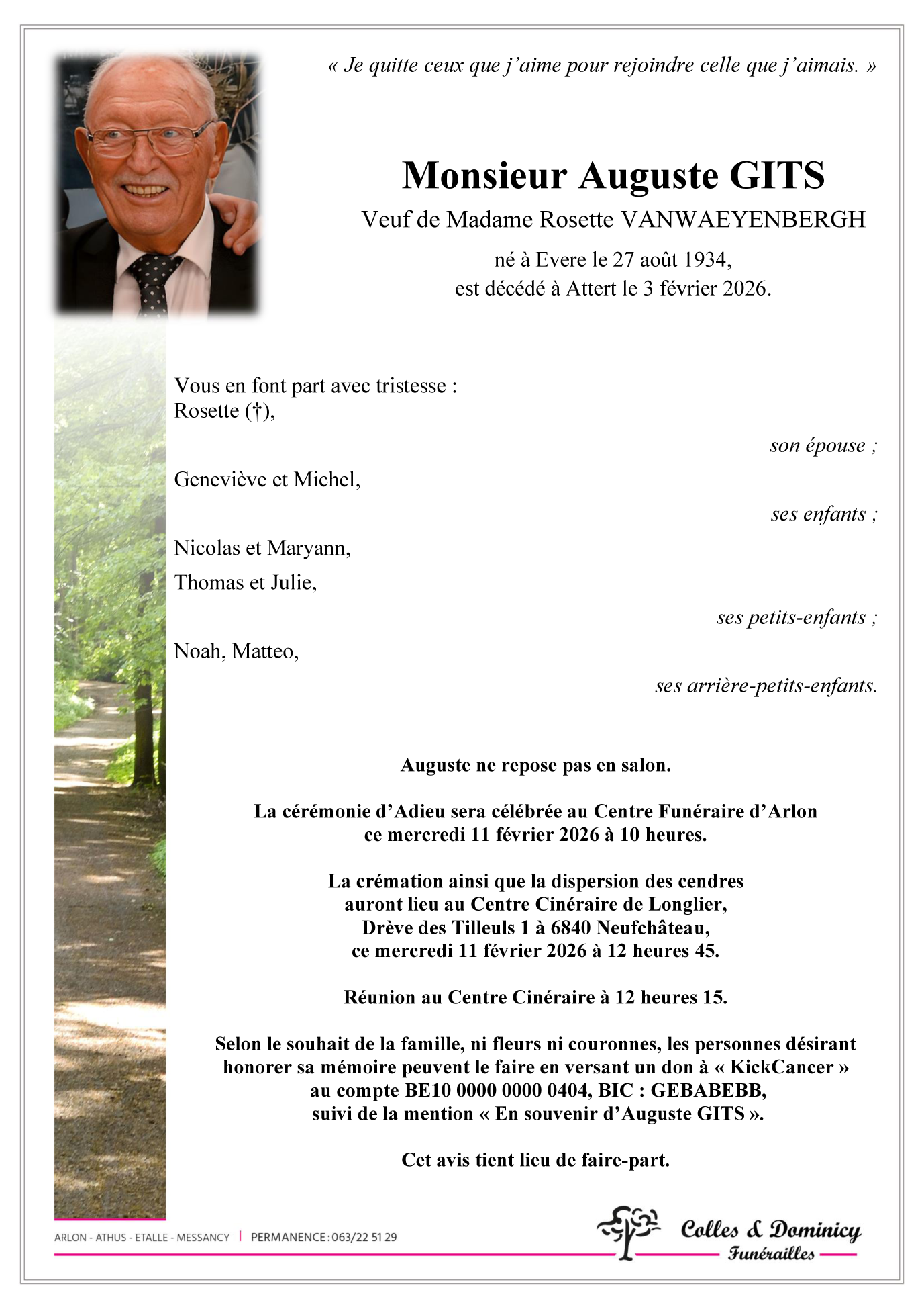 Overleden te Attert (6717, België) op dinsdag 3 februari 2026 op 91-jarige leeftijd