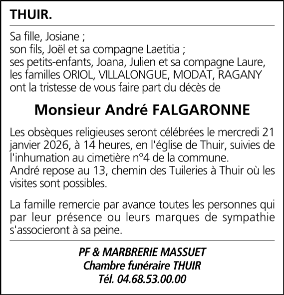 Décédé à Thuir (66300) le vendredi 16 janvier 2026 à l'âge de 89 ans