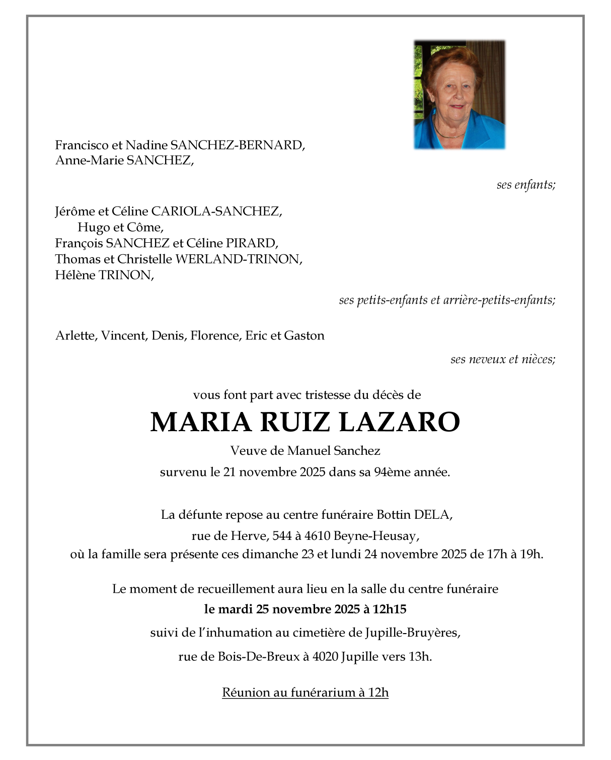 Died in Grivegnée (4030, Belgium) on 21 November 2025 at the age of 93 years