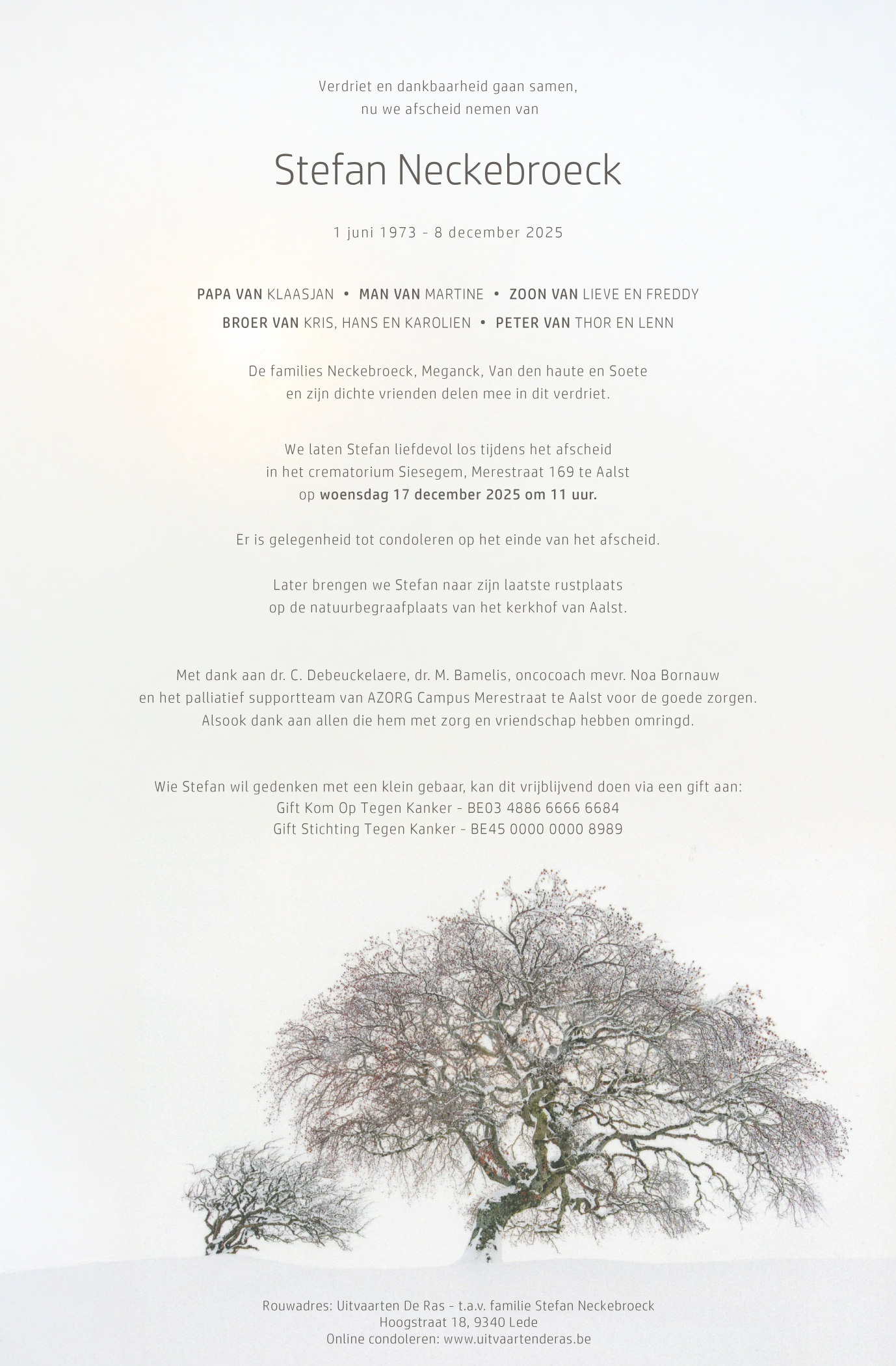 Overleden te Aalst (9300, België) op maandag 8 december 2025 op 52-jarige leeftijd
