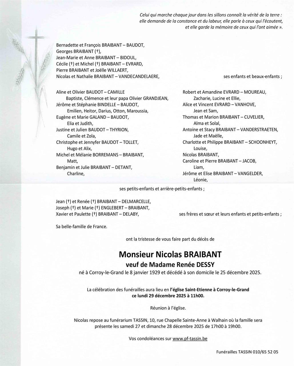 Décédé à Corroy-le-Grand (1325, Belgique) le jeudi 25 décembre 2025 à l'âge de 96 ans