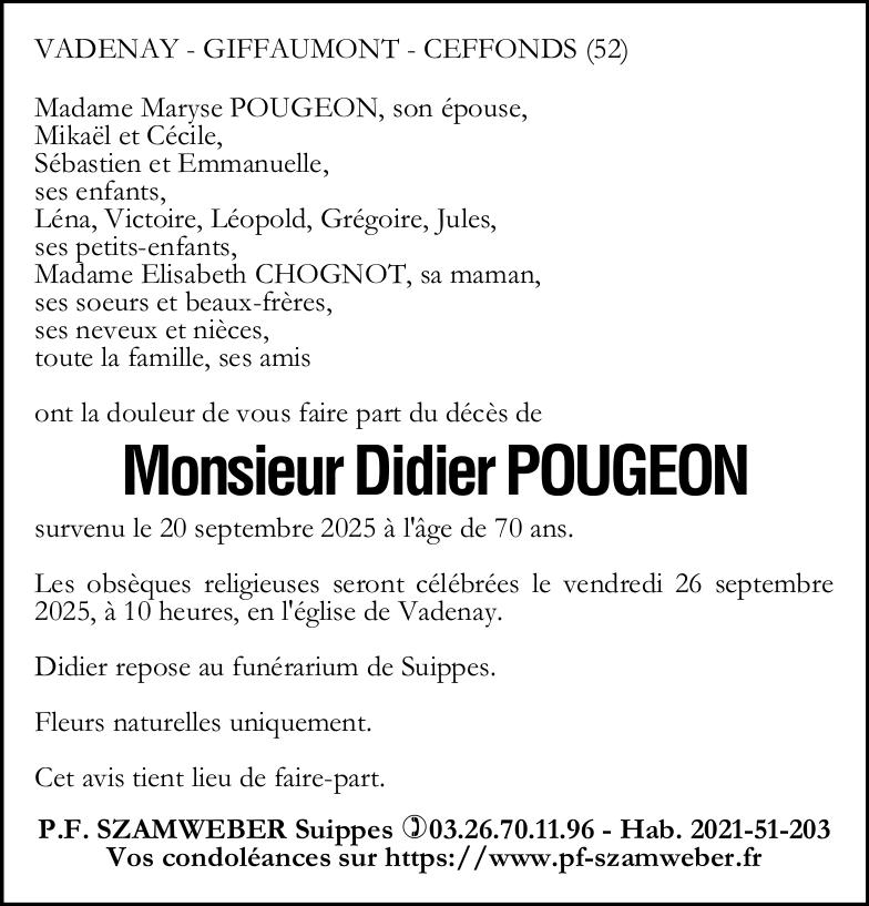 Died in Vadenay (51400) on 20 September 2025 at the age of 70 years