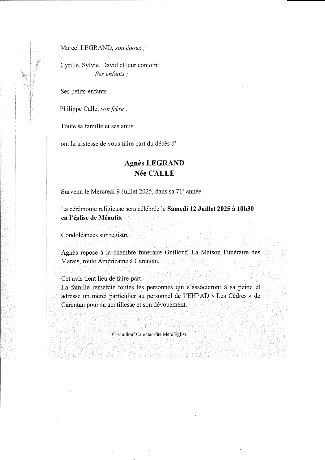 Overleden te Carentan (50500) op woensdag 9 juli 2025 op 70-jarige leeftijd