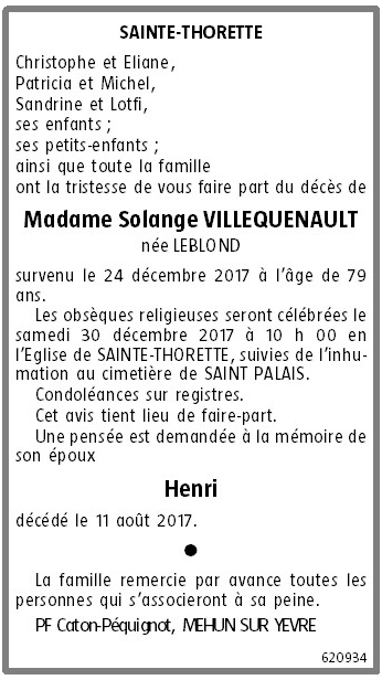 Viuda de Monsieur Henri, Maurice VILLEQUENAULT