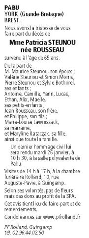 Fallecida en Pabu (22200) el jueves, 21 de enero de 2021 a la edad de 65 años