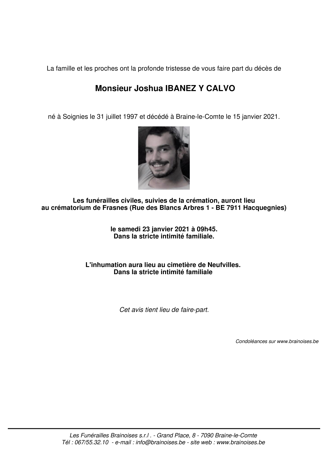 Overleden te Braine-le-Comte (7090, België) op vrijdag 15 januari 2021 op 23-jarige leeftijd