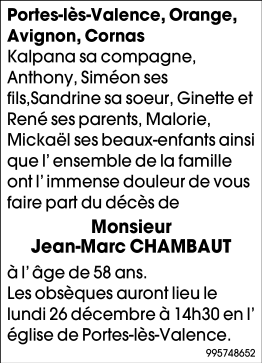 Overleden te Valence (26000) op woensdag 21 december 2022 op 58-jarige leeftijd