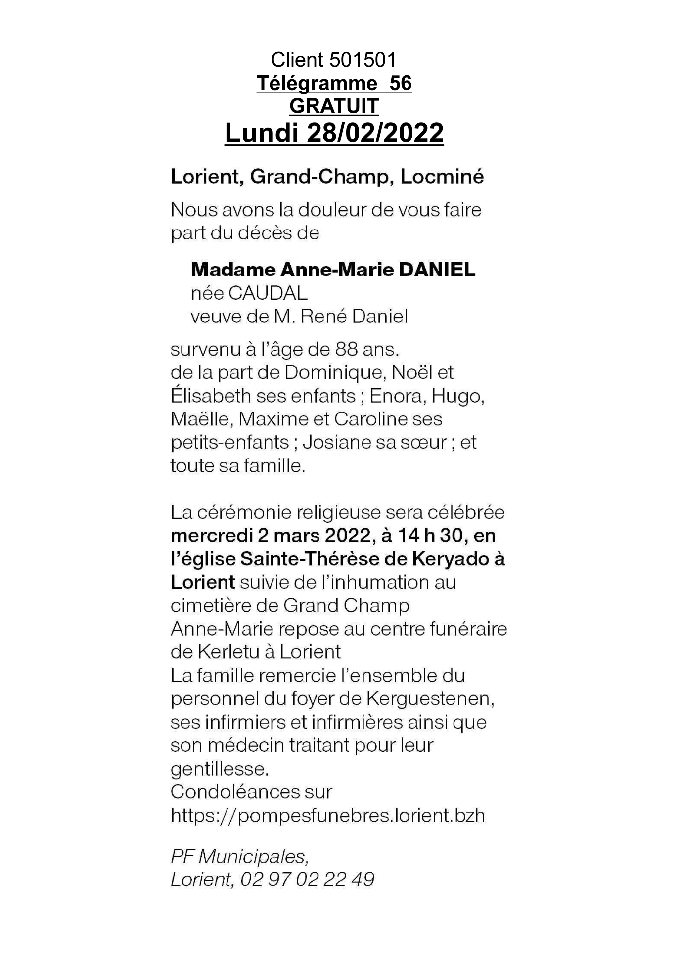 Veuve de Monsieur René, Louis, Marie DANIEL