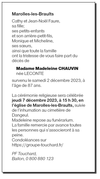 Madame Madeleine Marie Angéline CHAUVIN née LECONTE
