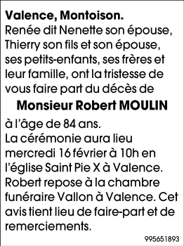Fallecido en Valence (26000) el viernes, 11 de febrero de 2022 a la edad de 84 años