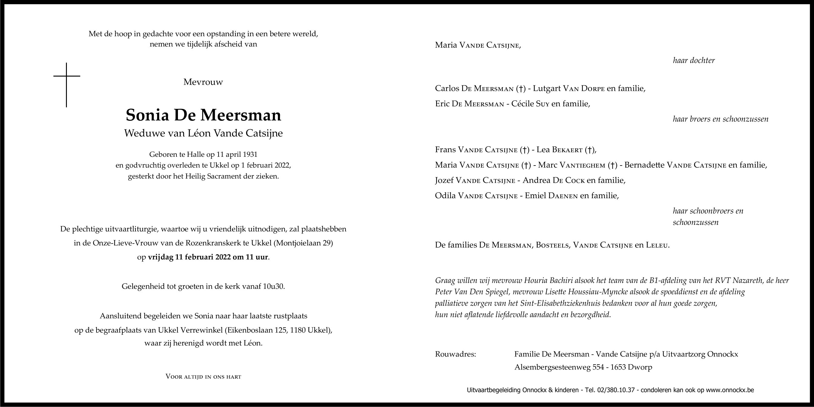 Veuve de Mijnheer Léon Vande Catsijne
