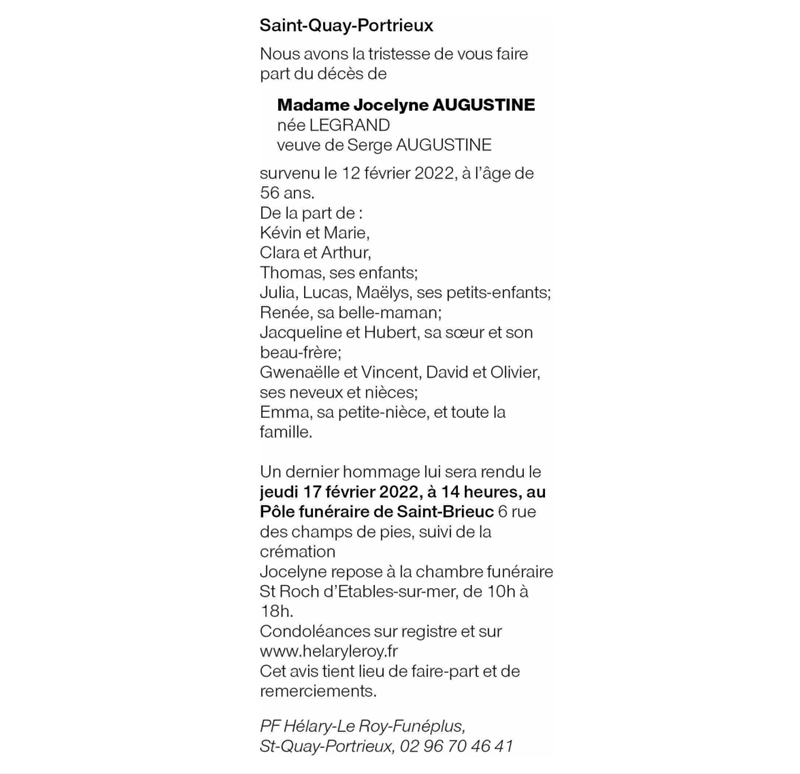 Madame Jocelyne AUGUSTINE née LEGRAND