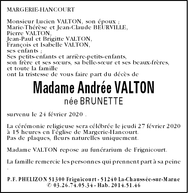 Echtgenote van Monsieur Lucien VALTON