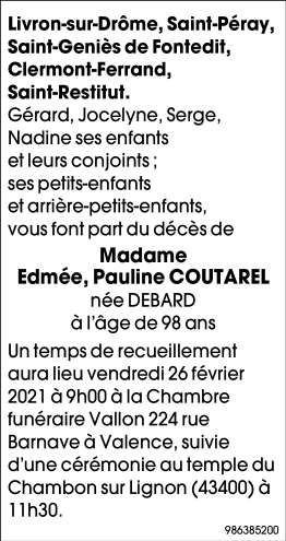 Overleden te Livron-sur-Drôme (26250) op dinsdag 23 februari 2021 op 98-jarige leeftijd