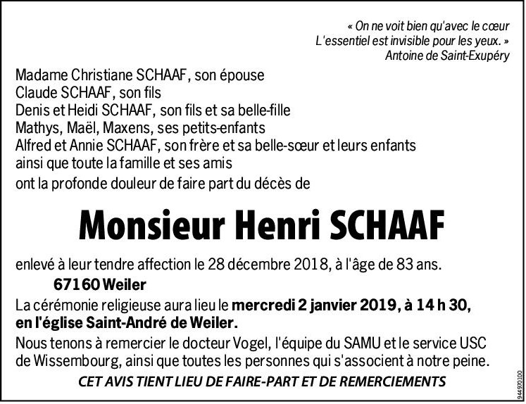 Fallecido en Wissembourg (67160) el viernes, 28 de diciembre de 2018 a la edad de 83 años