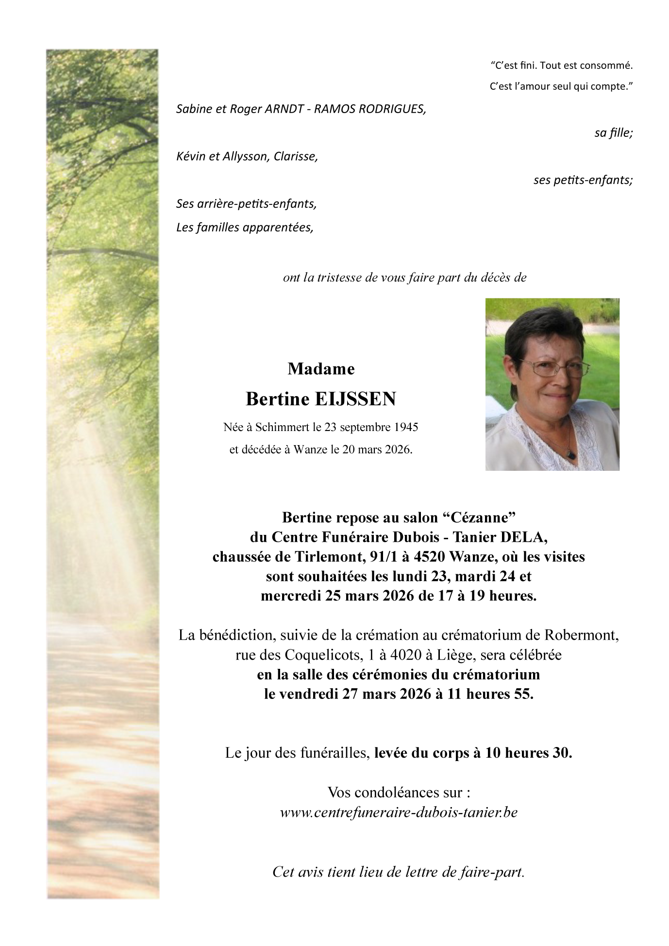 Décédée à Wanze (4520, Belgique) le vendredi 20 mars 2026 à l'âge de 80 ans