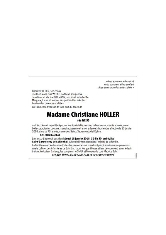 Madame Christiane HOLLER née WEISS