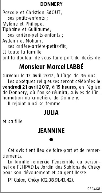 Décédé à Chécy (45430) le lundi 17 avril 2017 à l'âge de 96 ans