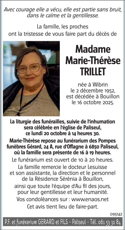 Died in Bouillon (6830, Belgium) on 17 October 2025 at the age of 72 years