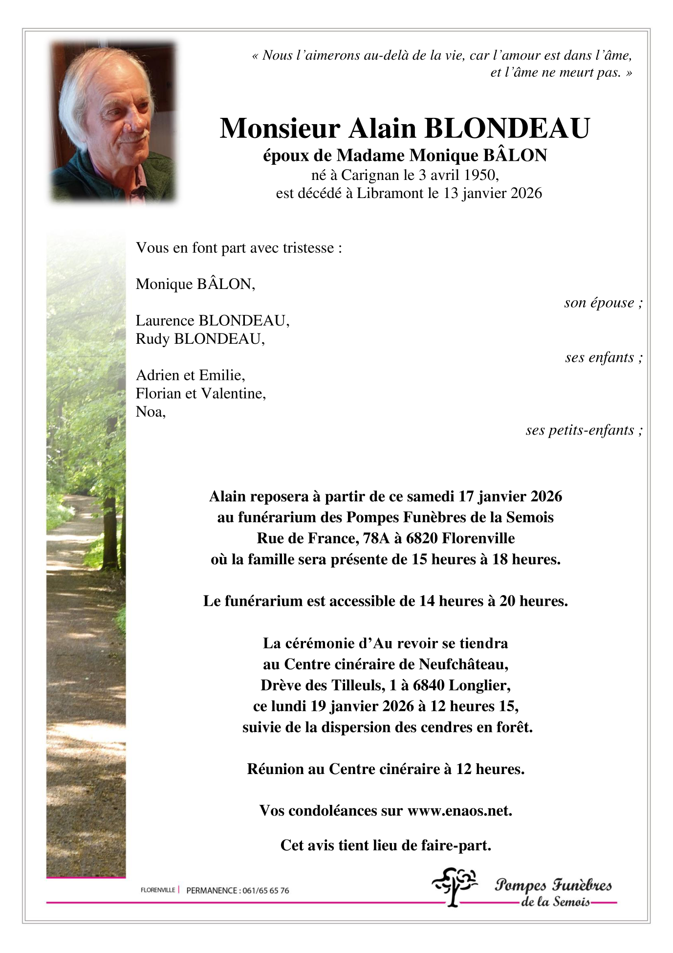Overleden te Libramont-Chevigny (6800, België) op dinsdag 13 januari 2026 op 75-jarige leeftijd