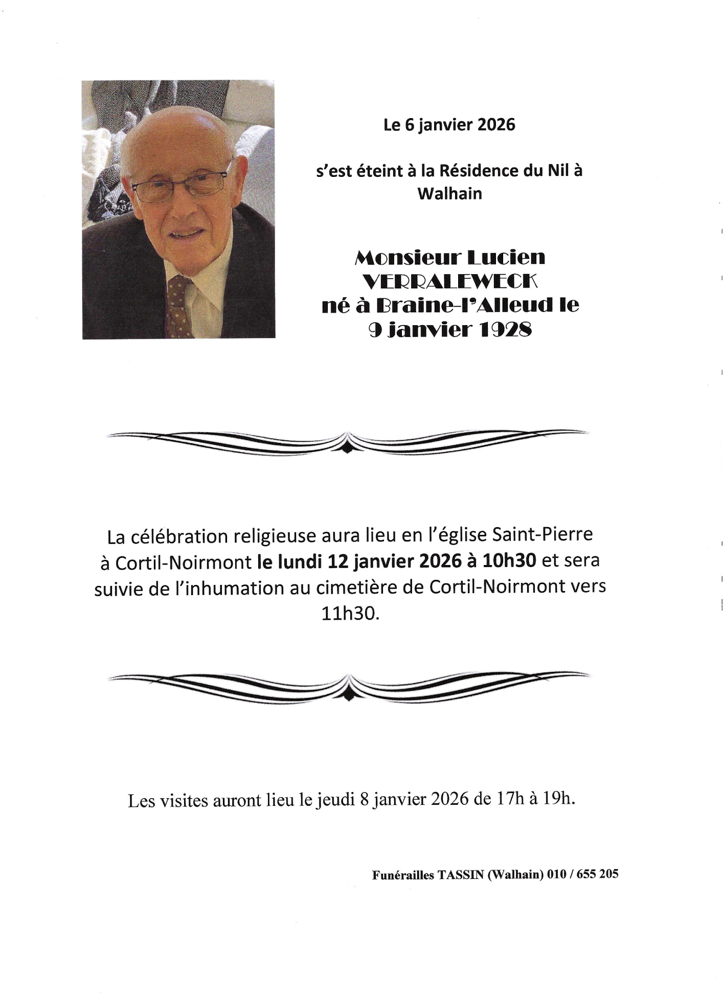 Décédé à Walhain (1457, Belgique) le mardi 6 janvier 2026 à l'âge de 97 ans