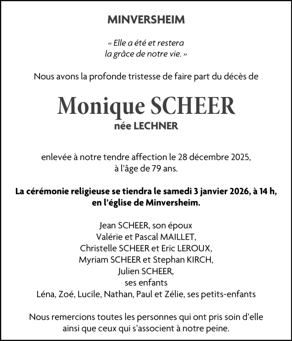 Madame Monique Marie Cécile SCHEER née LECHNER