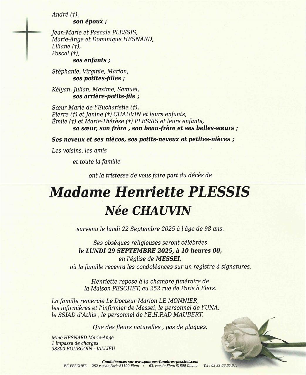 Madame Henriette PLESSIS geboren CHAUVIN
