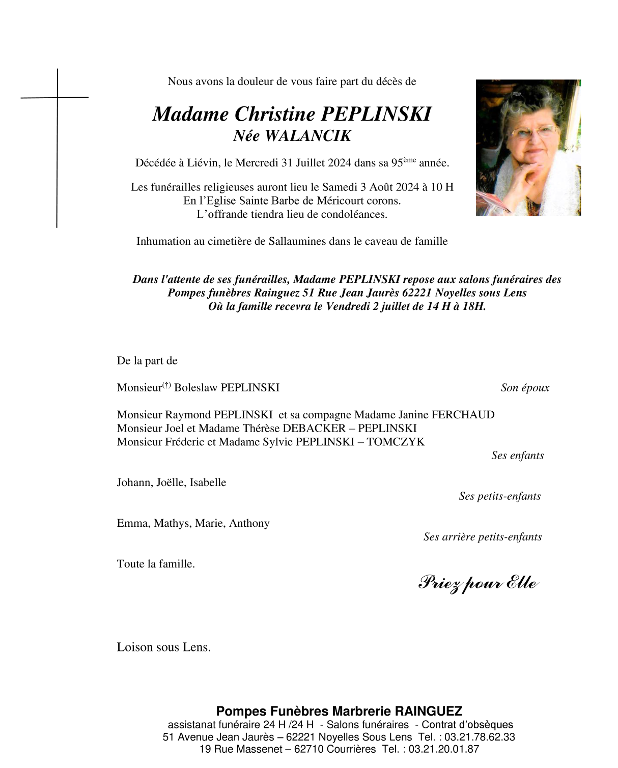 Madame Christine PEPLINSKI née WALANCIK