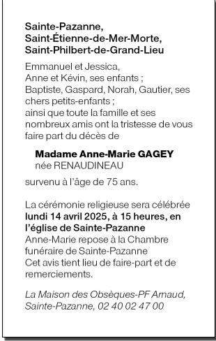 Décédée à Sainte-Pazanne