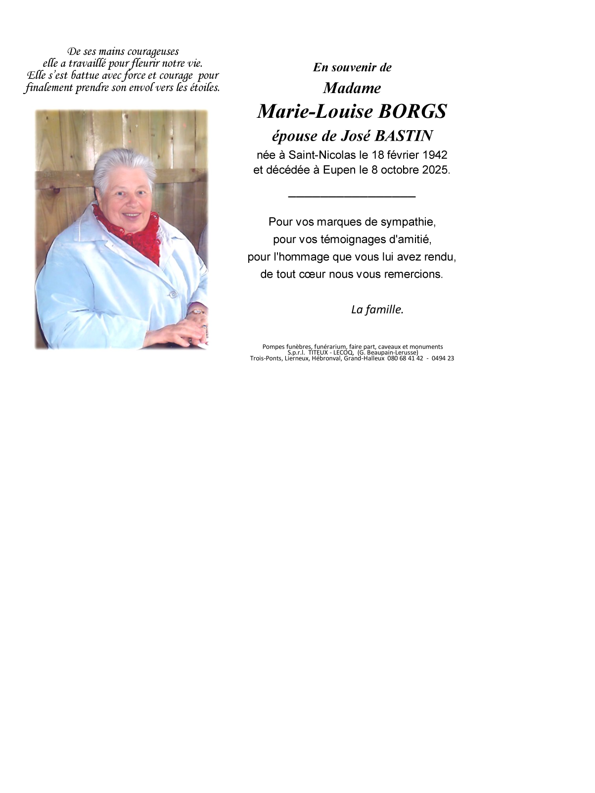 Overleden te Eupen (4700, België) op woensdag 8 oktober 2025 op 83-jarige leeftijd
