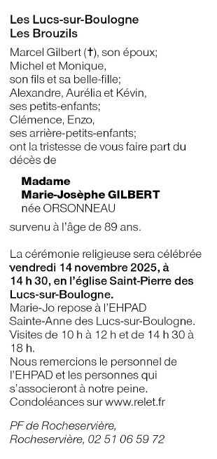Madame Marie-Josèphe GILBERT née ORSONNEAU