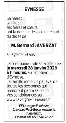 Décédé à Les Lèves-et-Thoumeyragues (33220) le dimanche 18 janvier 2026 à l'âge de 69 ans