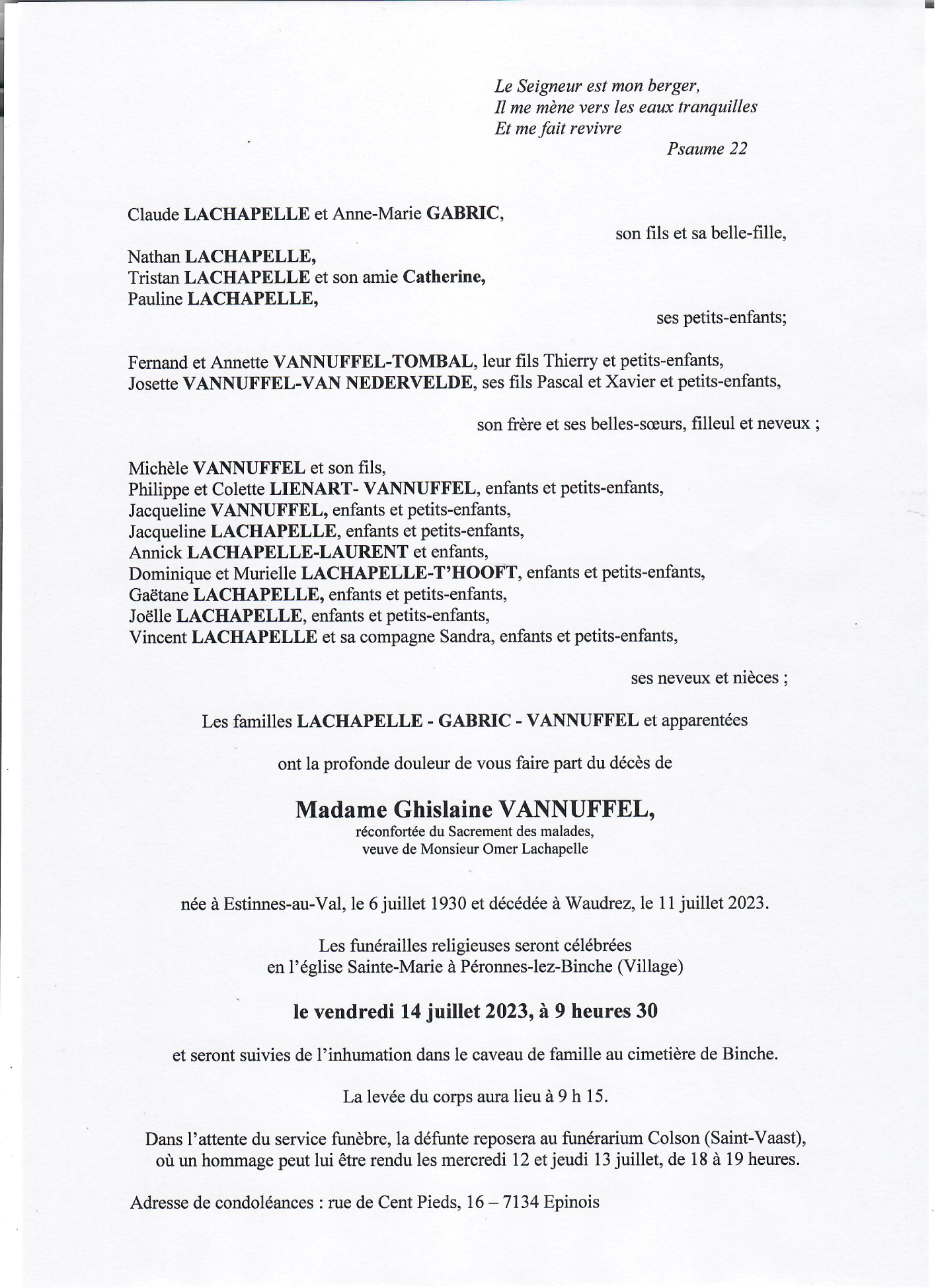 Veuve de Monsieur Omer LACHAPELLE