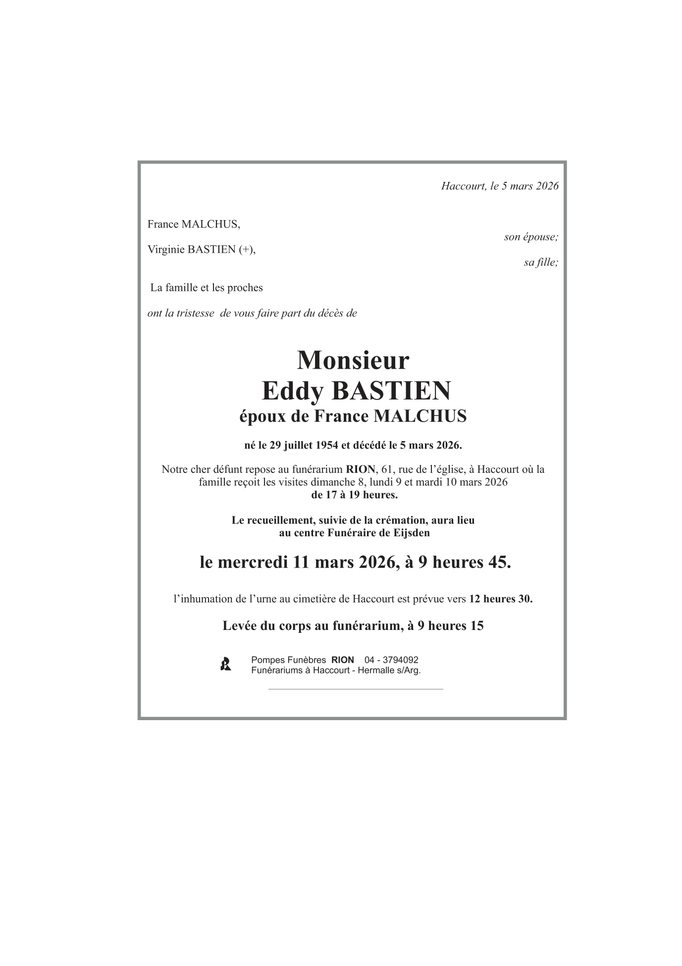 Décédé à Hermalle-sous-Argenteau (4681, Belgique) le jeudi 5 mars 2026 à l'âge de 71 ans