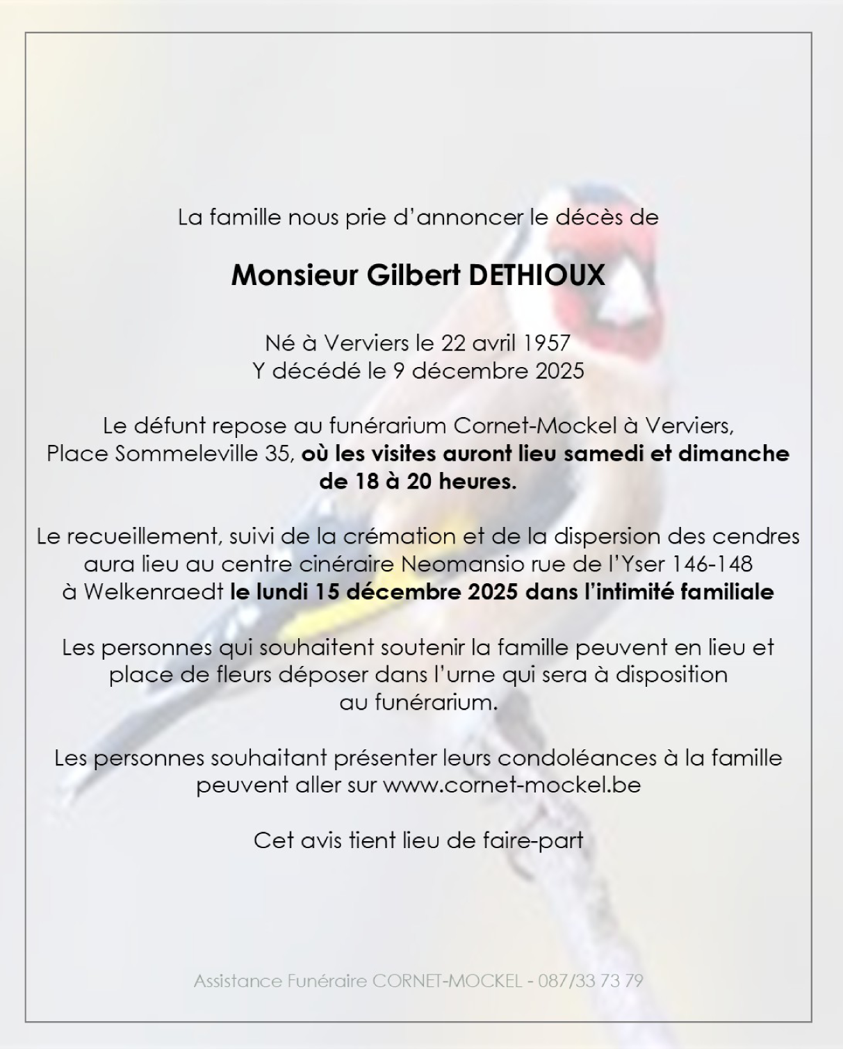 Décédé à Verviers (4800, Belgique) le mardi 9 décembre 2025 à l'âge de 68 ans