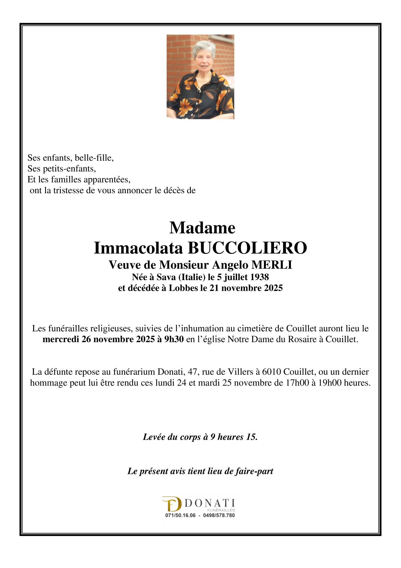 Veuve de Monsieur Angelo MERLI