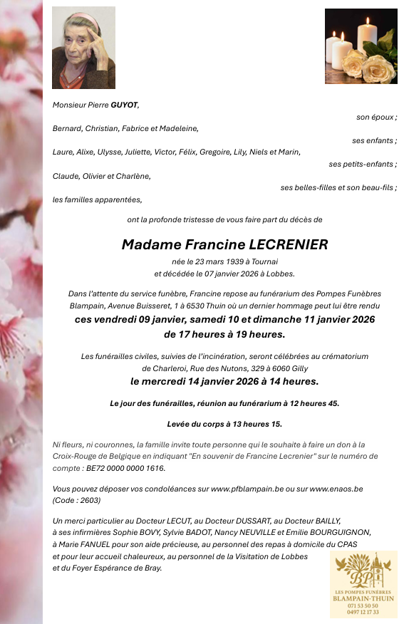 Died in Lobbes (6540, Belgium) on 07 January 2026 at the age of 86 years