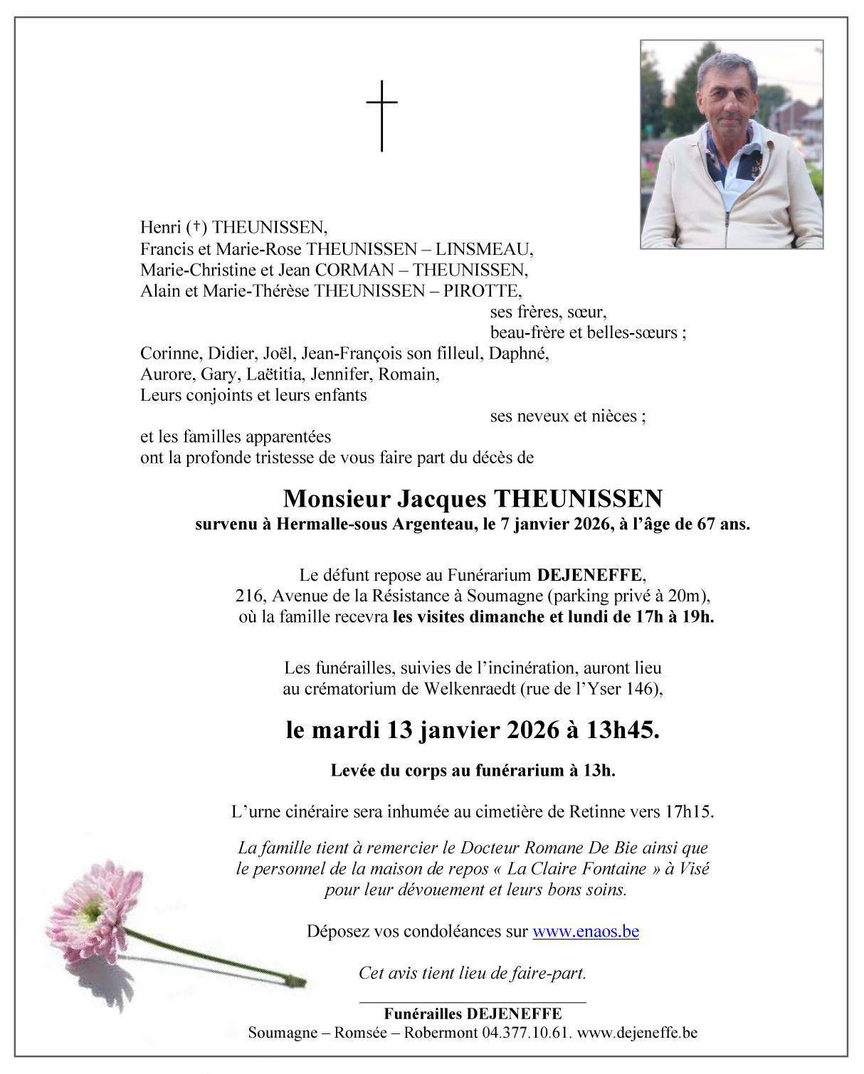 Died in Hermalle-sous-Argenteau (4681, Belgium) on 07 January 2026 at the age of 67 years
