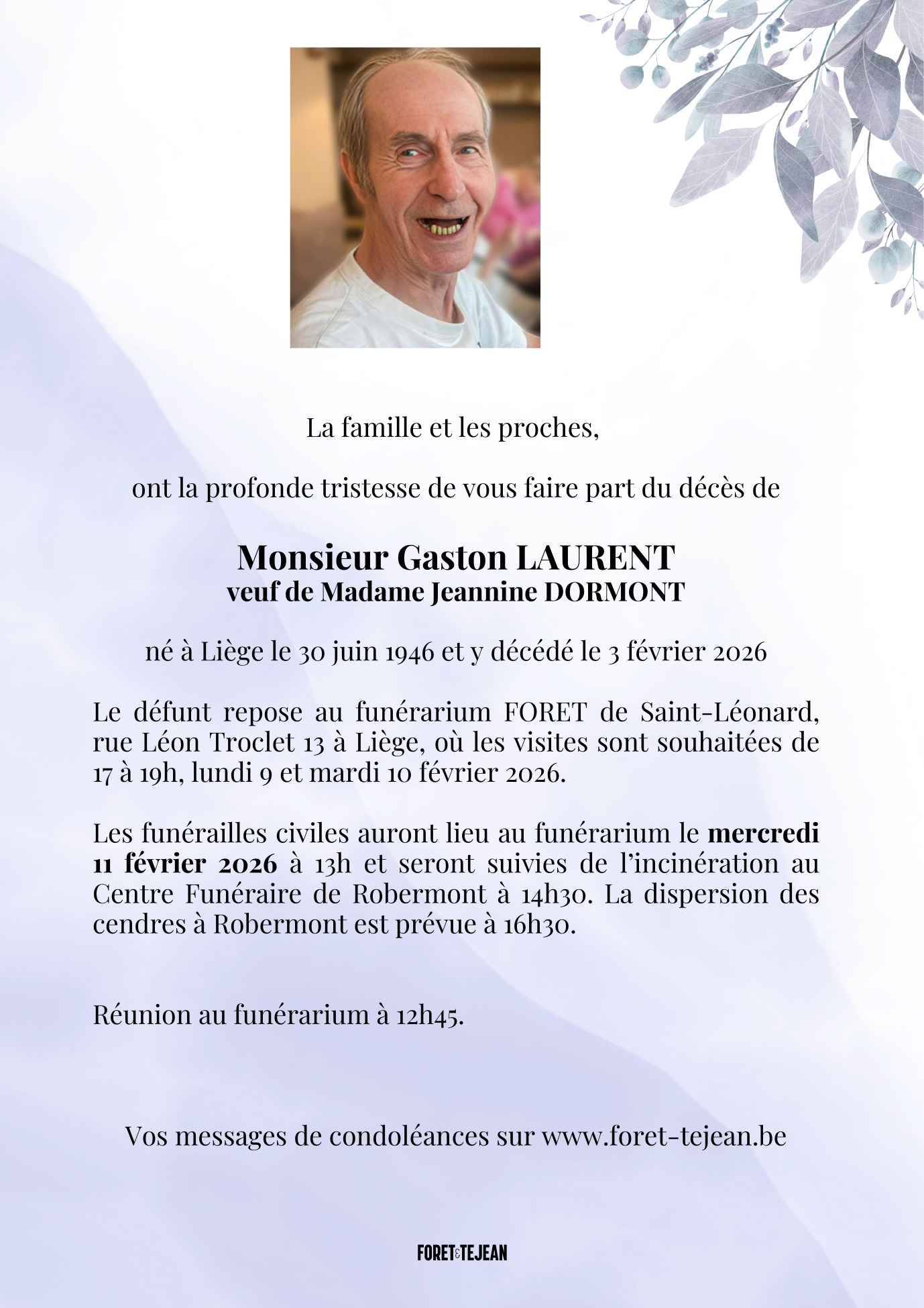 Décédé à Liège (4000, Belgique) le mardi 3 février 2026 à l'âge de 79 ans