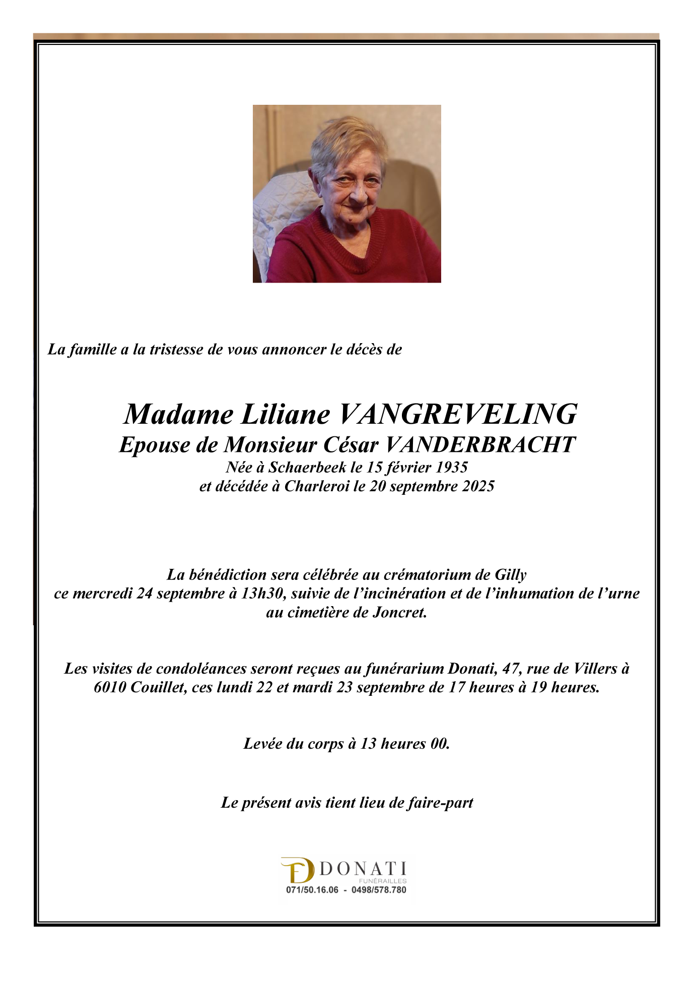 Madame Liliane VANGREVELING