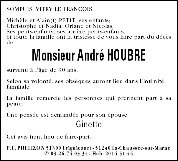 Veuf de Madame Ginette HOUBRE